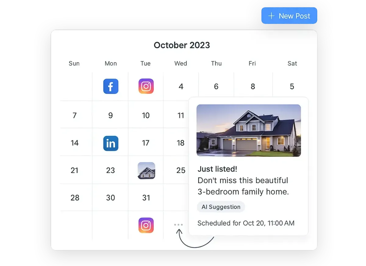 Put your social media on autopilot—no stress, no wasted time. With Smart Listing Suite, you get a built-in scheduler that posts to all your social channels at the push of one button, powered by AI tools made for real estate.