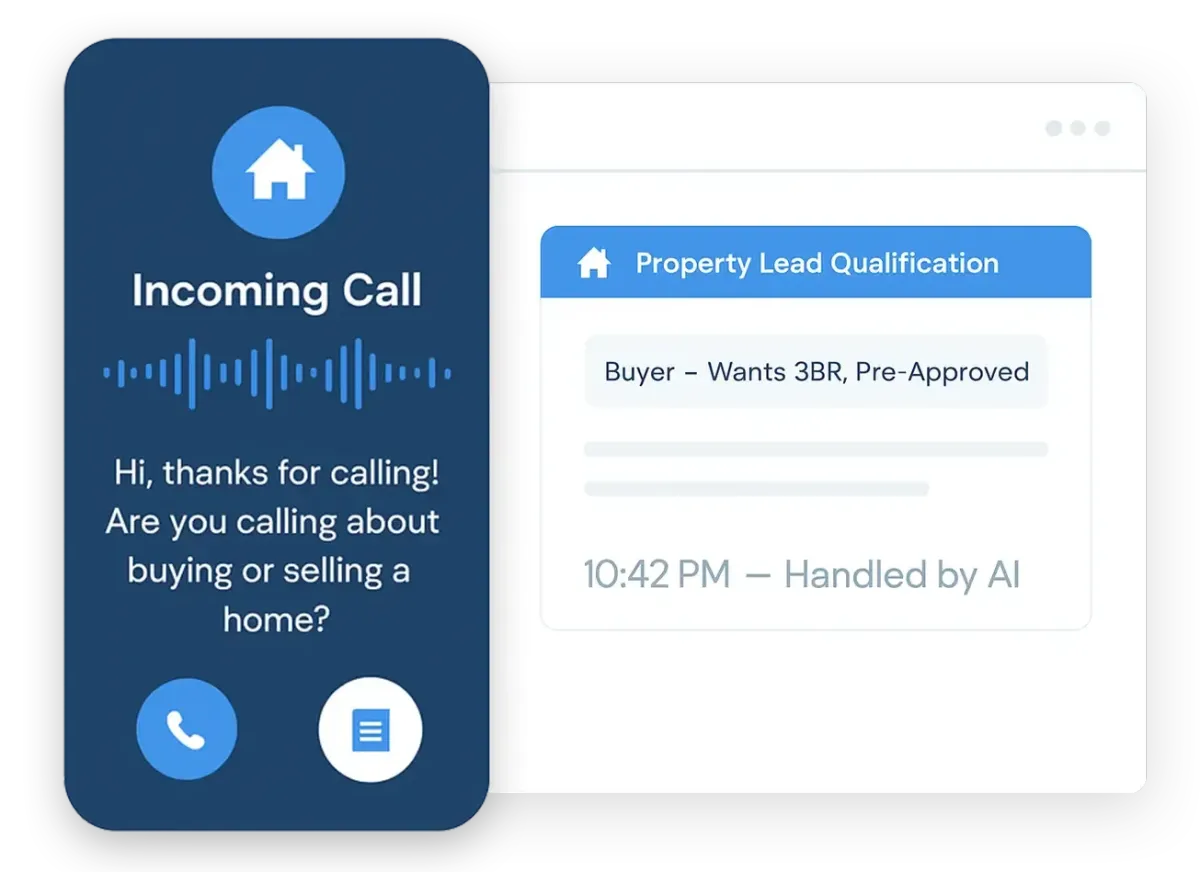 Tired of losing opportunities because you couldn’t pick up the phone? With our Voice AI Assistant every prospect is greeted, qualified, and routed automatically—24/7. Even when you’re at a showing or off the clock, your business keeps moving forward.
