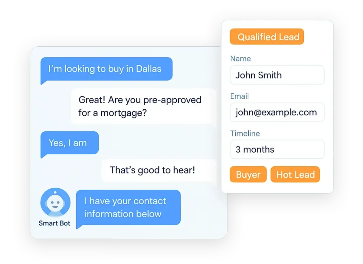 Not anymore, with the Smart Website Chatbot that steps in to greet site visitors, ask key questions, and capture contact info so you can follow up with warm leads, not cold ones.