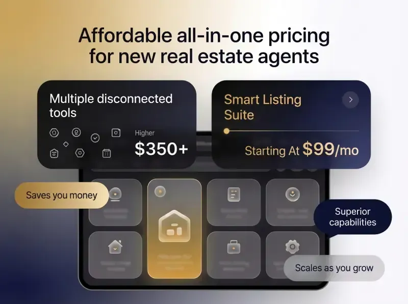 Most new agents spend $350/month or more on disconnected tools (CRM, websites, email marketing, phone services, etc). Smart Listing Suite starts at just $99/month with everything integrated. It actually saves you money, delivers superior capabilities, and provides a powerful upgrade path as you grow.